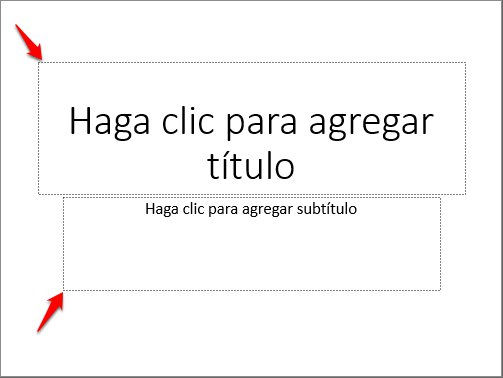 En general usted trabajará con diapositivas prediseñadas que tienen una estructura determinada según su función. Por ejemplo, la diapositiva de título que se muestra a continuación contiene dos marcadores de texto: uno para ingresar el título y otro para ingresar el subtítulo.